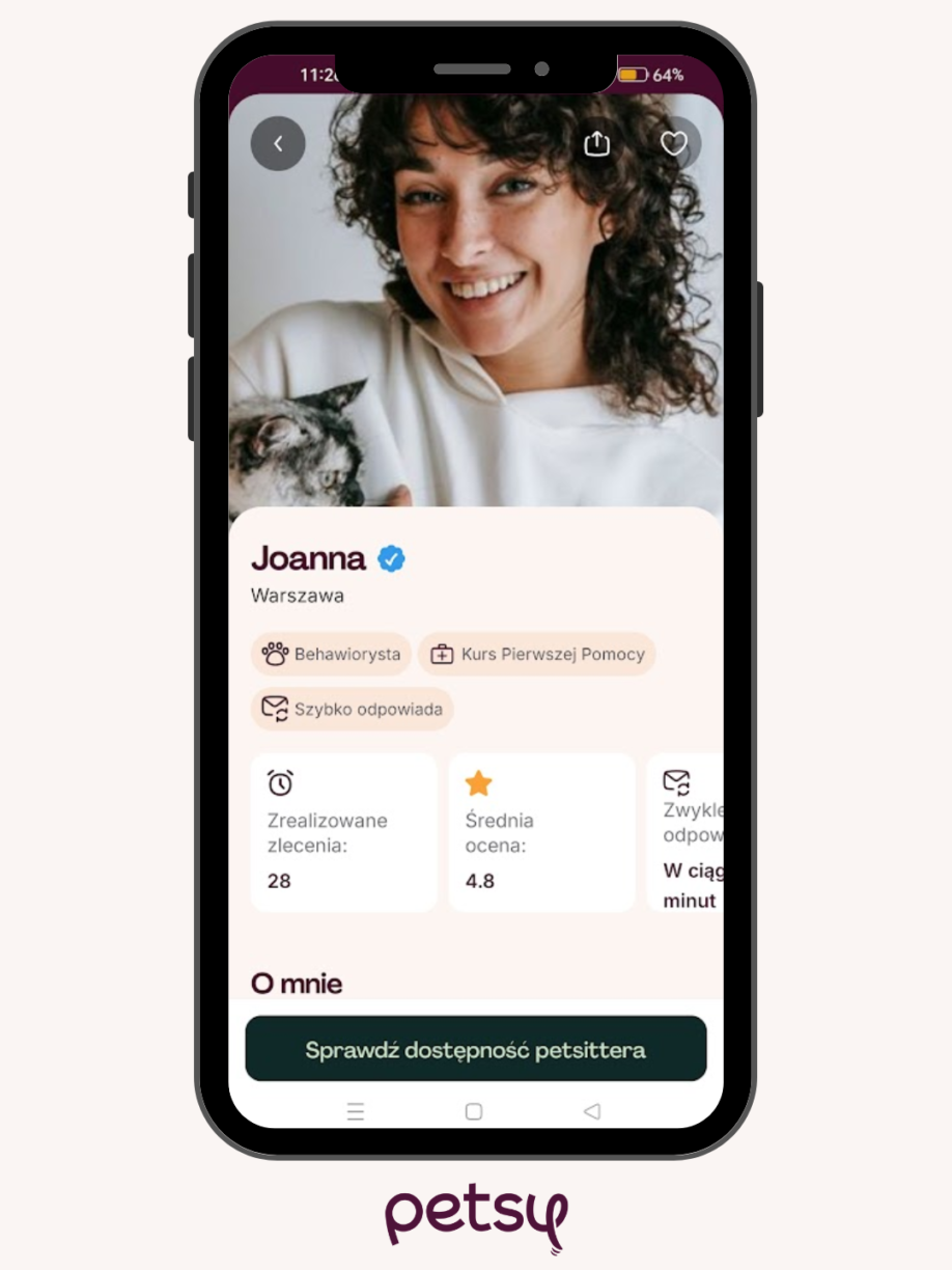 W profilu widoczne są również dodatkowe kwalifikacje petsittera, takie jak ukończone kursy, wykształcenie kierunkowe lub inne kompetencje związane z opieką nad zwierzętami. Każda z tych informacji jest wcześniej weryfikowana przez zespół Petsy, zanim zostanie wyświetlona w profilu.