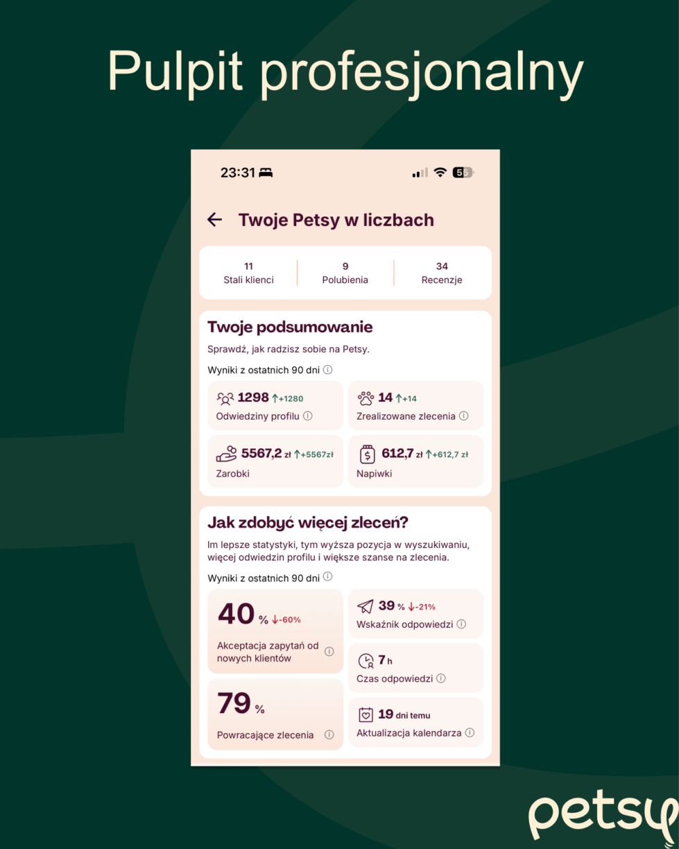 - Perspektywa platformy: Dowiesz się, jak my jako Petsy patrzymy na Twój profil i co sprawia, że algorytmy oraz klienci widzą Cię jako profesjonalnego partnera.